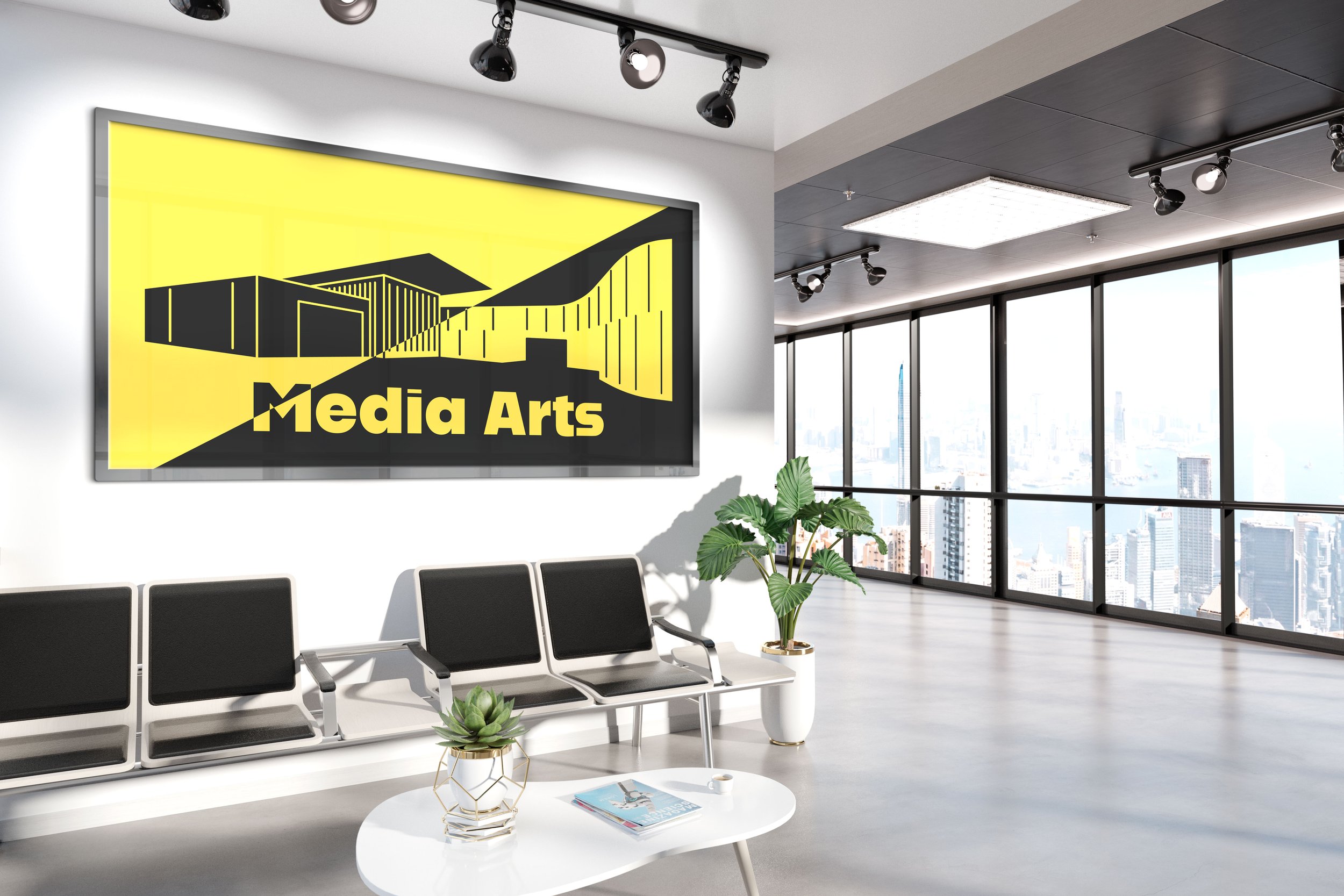 Multiple designers got to pitch their ideas for the Media Arts ribbon cutting ceremony. My proposal was chosen, I went with a bright yellow for the main color and I outlined the building in illustrator as the main design element. I paired it with an elegant font called Lubaline for decorative use and Alfarn2 for bold information purposes. The moldboard highlighted the vision statement of unity, vision, community and inspiration. Followed by some mock ups on how the assets could be used.
